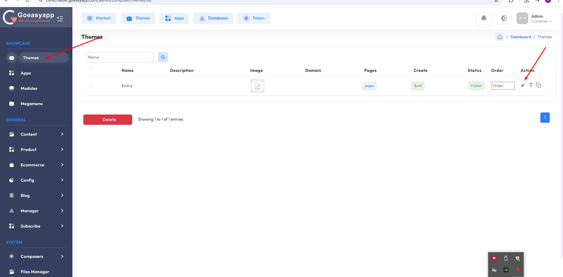 Note: After installation, the website data is in demo mode. If you want to start over with fresh data, go to the Theme section, click the Edit button of the Entry Theme. In the edit screen, change the Database option to Entry to reinitialize the data.