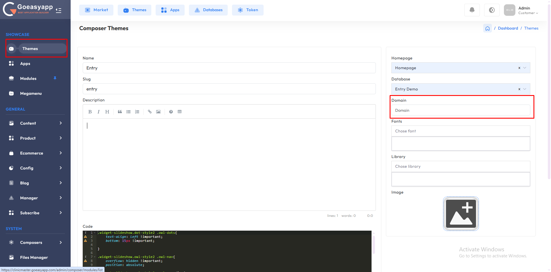 3.Insert domain for theme, You can use multiple domains at the same time without duplicate data or duplicates of your choice.